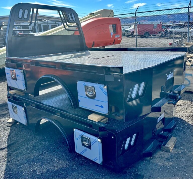 We stock hundreds of truck beds, including standard non skirted beds, 4 box skirted, tradesman beds, custom hauler beds, service bodies, crane bodies and more.