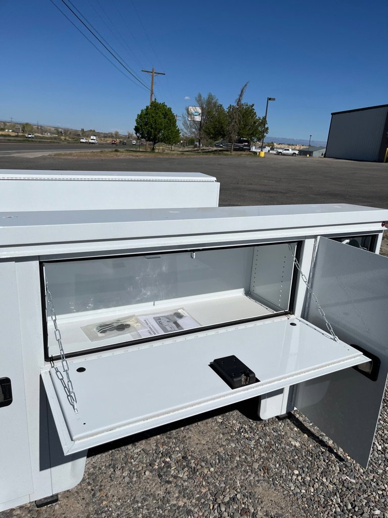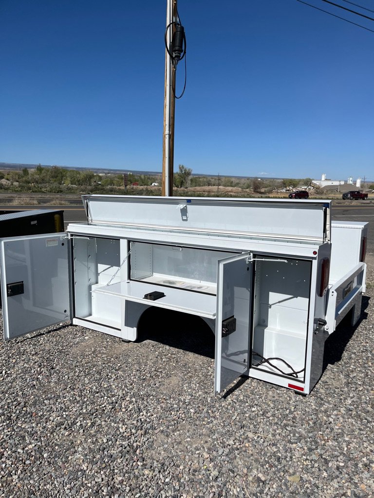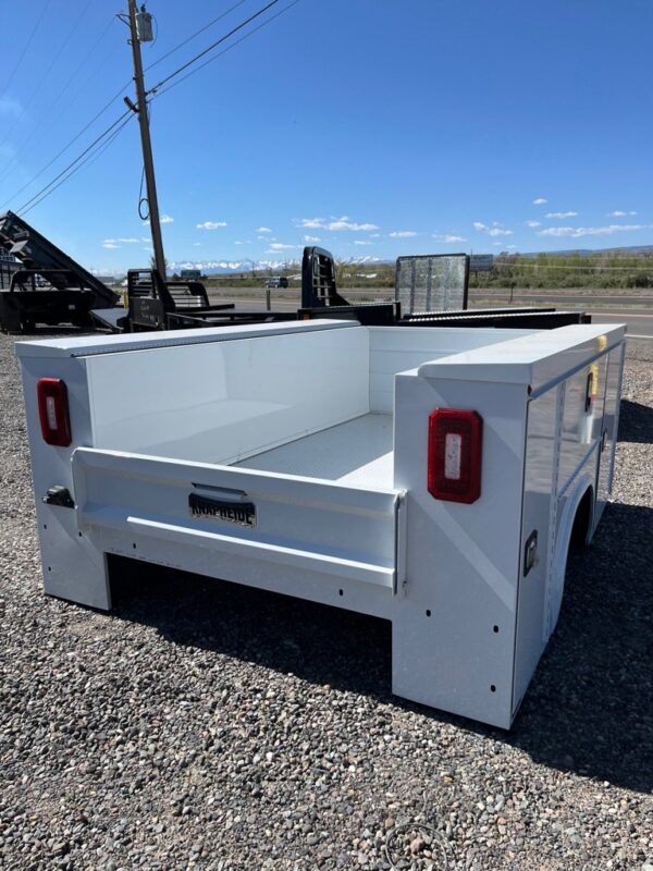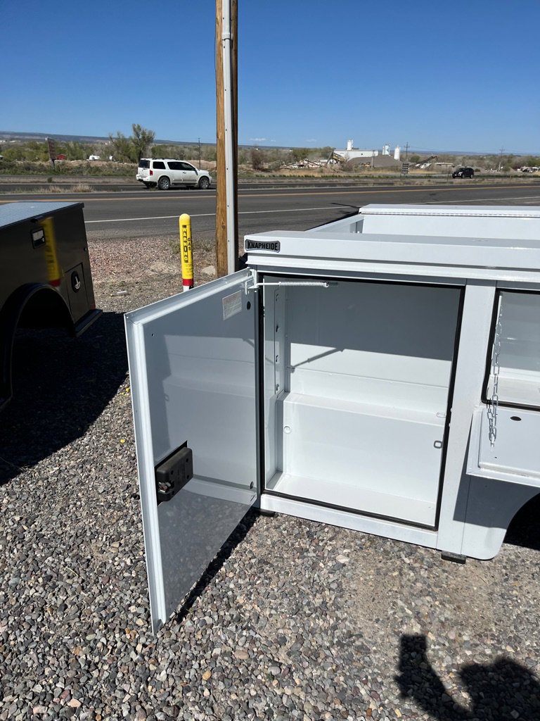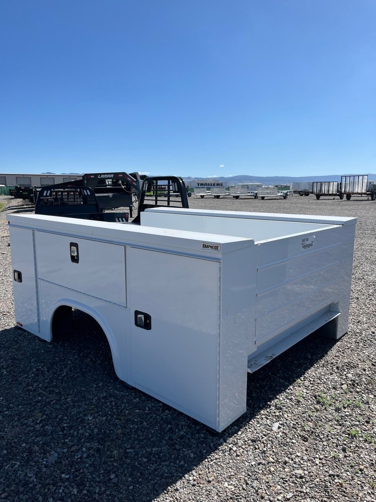 KNAPHEIDE STEEL SERVIVE BODY (UTILITY BED) 56” & 58” CTA / SINGLE WHEEL LONG BED, GALVANNEAL STEEL BODY SHELL, SLAM LOCK TAIL GATE, FLIP TOP COMPARTMENT, EXTERNAL COMPARTMENTS, ALL LED LIGHTING & MORE OPTIONS AVAILABLE!!