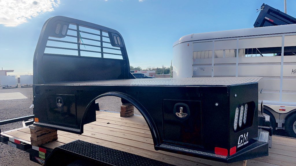 TB154F SKIRTED-SINGLE WHEEL LONG BED- 4 BOX TB 58 CTA, 42 Runners, 2.5 Hitch, Powder Coat, All LED Lighting, Gooseneck Compartment W/ Ball, Diamond Plate Trim, Headache Rack, Receiver Hitch, Stake Pockets