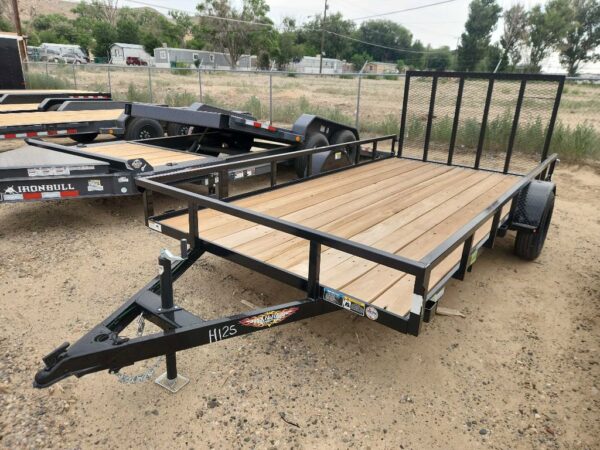 H&H 82×14 SQUARE TUBE UTILITY TRAILER 3K Idler Axle, 15 inch Radial Tires, Spring Assisted 48 inch Rear Ramps, Stakepockets, Diamond Plate Fenders, Spare Mount, Powder Coated, All LED Lighting