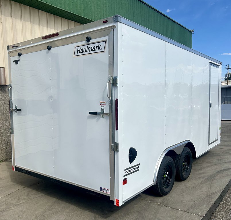HAULMARK 8.5X16 ENCLOSED TRAILER 7K Rated, Cable Assisted Ramp Door, Side Access Door With RV Latch, All LED Lighting, Dove Tail, 7′ Interior Height, V-Nose, ATP Stone Guard, 15 Radial Tires, Electric Brakes on All Wheels, Dry Max Interior, Side Wall Flow Through Vents, D-Rings, 12-Volt Interior Dome Light
