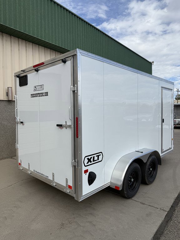 7X14 EZ HAULER ENCLOSED TRAILER All-Aluminum Construction, V-nose, Ramp Door, 3/8 Water-Resistant Interior Wall Panels and 3/4 Interior Decking, Side Access Door , LED Lighting, 24” Stone Guard, 2 5/16, 7000 lb GVWR