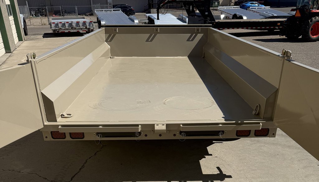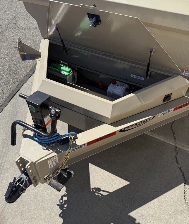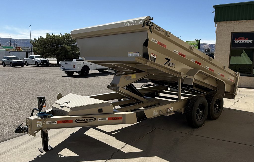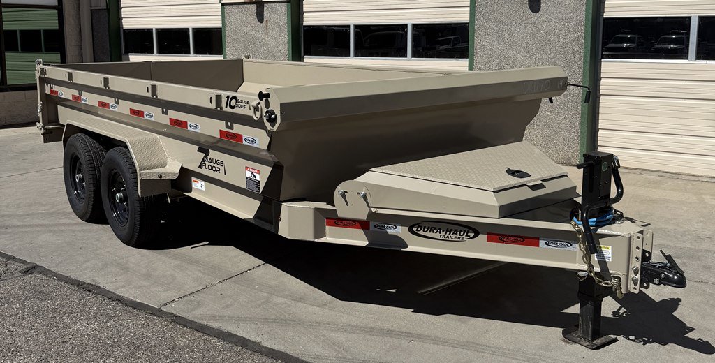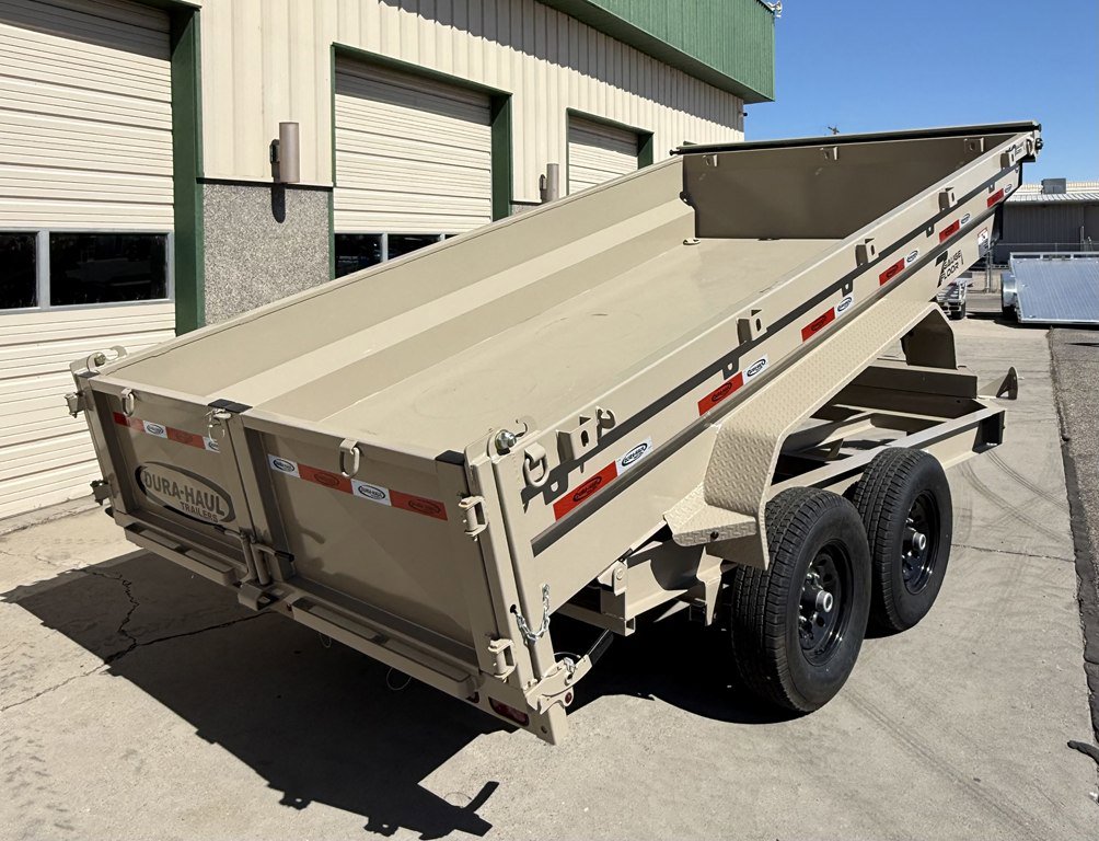 Dura -Haul 14′ Dump Trailer 14K Rated , 24′ Tall Sides , 7 Gauge Floor , 10 Gauge Walls ,Heavy Duty Drop Leg Jack, Adjustable 2 5/16 Coupler , 7k Rated Electric Brake Axles, Slam Latch Rear Gates . Spreader Gate , Heavy Duty Steel Ramps, LED lights, Lockable Tool Box, Power up Power Down, Heavy Duty Scissor Lift , 3 YEAR Personal use WARRANTY !!!!!